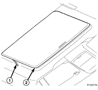 4. Once the trim lace is attached to sunroof module using a trim stick C-4755 or equivalent, begin tucking the headliner under the lip on the trim lace working all the way around the opening. When installing a new trim lace, begin tucking the headliner under the lip as the tear cord (1) is removed working all the way around the opening.