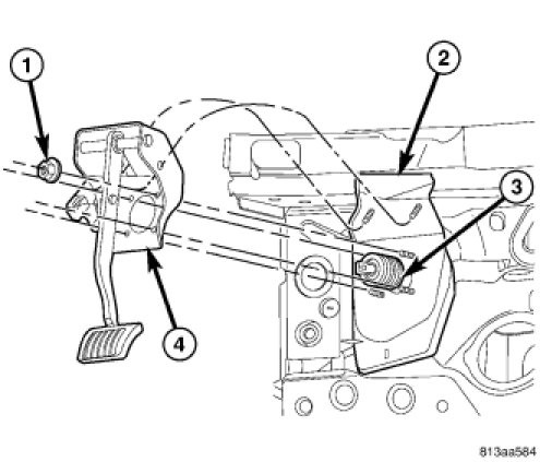 1. Install adjustable brake pedal assembly (4) under instrument panel and slide over booster push rod.