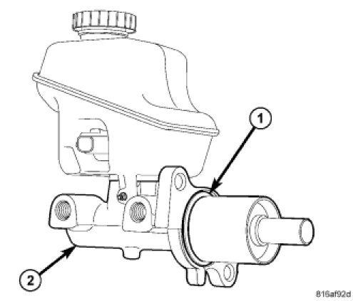1. Install NEW brake fluid reservoir sealing grommets (2) in master cylinder housing (1).