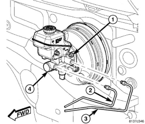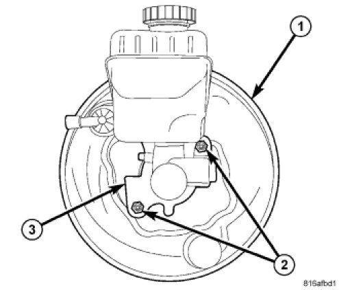 3. Position master cylinder (3) on studs of power brake booster, aligning booster push rod with master cylinder piston.