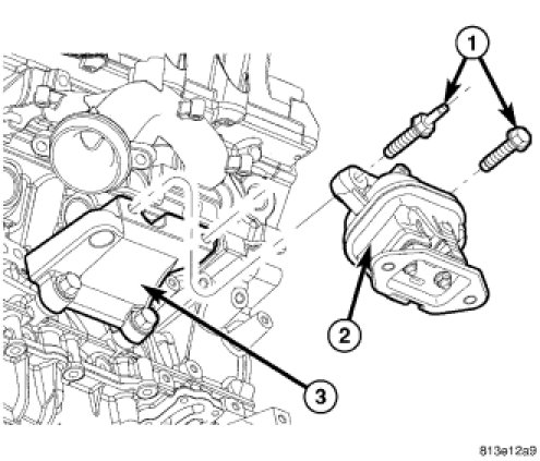 6. Remove engine mount studs (1) from the right engine mount isolator.