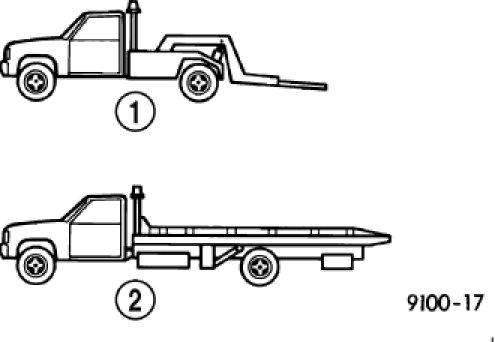 be sure the has at least 100 mm (4 in.) ground clearance. If minimum ground clearance cannot be reached, use a towing dolly. If a flat bed device is used, the approach angle should not exceed 15 degrees.