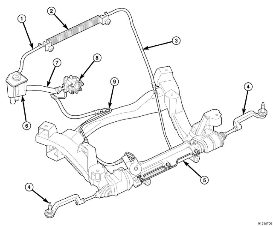 - Pump pressure (8), return (1&3) and supply (6) hoses
