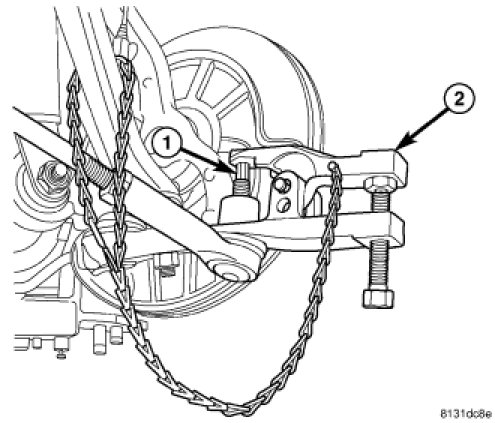 14. Using Puller (2), Special Tool 9360, separate upper ball joint stud (1) from knuckle.