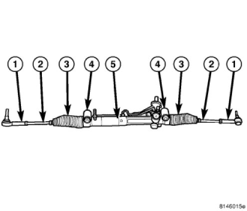 The gear cannot be adjusted or internally serviced. If a malfunction or a fluid leak occurs, the gear must be replaced as an assembly. The only serviceable component on the steering gear is the outer tie rod (1).