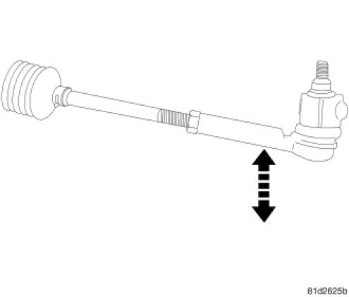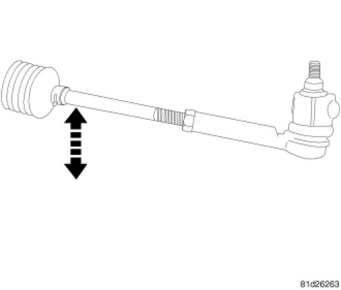 Grasp the outer tie rod near the ball stud and attempt to move the tie rod straight up and down. If any free-play is felt, replace the outer tie rod Tie Rod End - Removal. If no free-play is felt at the outer tie rod, attempt to move the inner tie rod in the same manner. Refer to the following procedure.