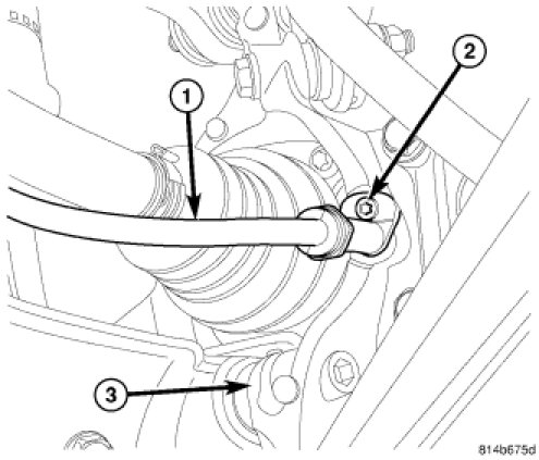 14. Insert end of cable (1) through rear knuckle (3) and install mounting screw (2). Tighten screw to 8 Nm (71 in. lbs.) torque.