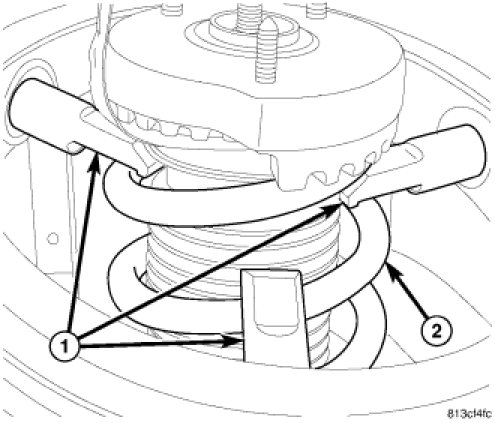 3. Compress coil spring until all spring tension is removed from upper mount.