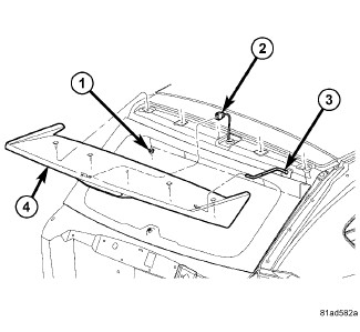 5. Disconnect the electrical connector (2) from the center high mount stop lamp.