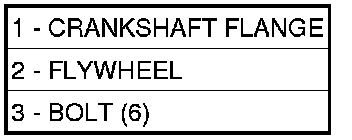 3. Remove the six flywheel-to-crankshaft bolts (3) and remove flywheel assembly (2).
