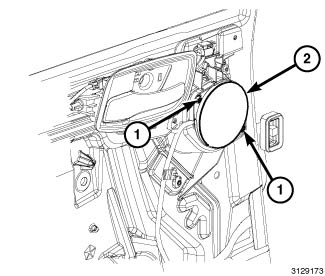 2. Position the speaker (2) into the door and install the speaker retainers (1).