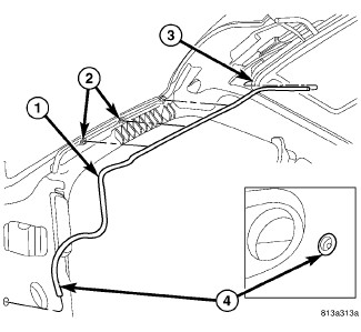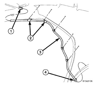 1. Install the rear hose (3) and seat the push pin fasteners (2) fully.