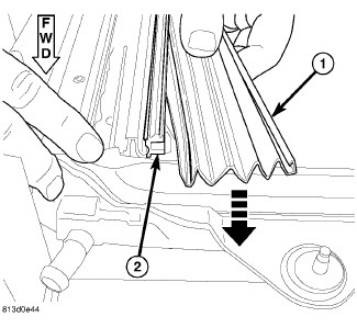 5. Slide the mechanism covers (1) out the front of the guide in the frame (2).