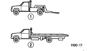 be sure the has at least 100 mm (4 in.) ground clearance. If minimum ground clearance cannot be reached, use a towing dolly. If a flat bed device is used, the approach angle should not exceed 15 degrees.