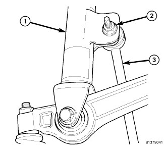 5. Remove nut (2) fastening stabilizer link (3) to shock assembly (1). Slide link ball joint stem from shock assembly.
