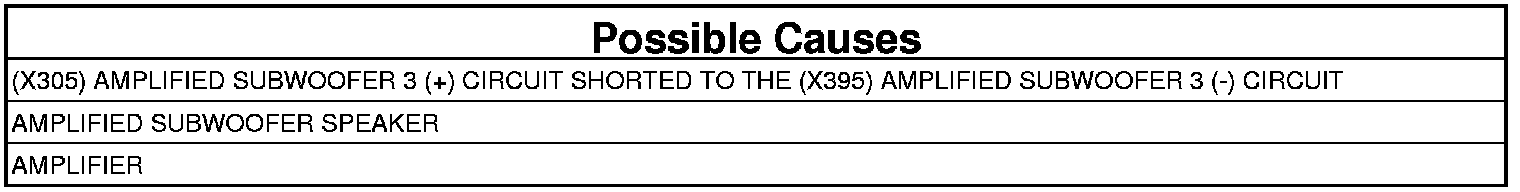 - Repair the (X305) Amplified Subwoofer 3 (+) circuit, and the (X395) Amplified Subwoofer 3 (-) circuit for a short together.