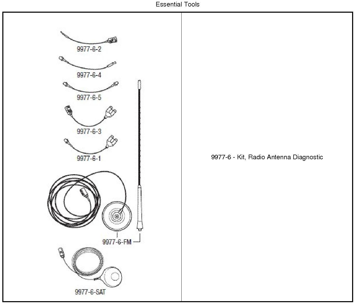 For information on diagnosing the antenna and cables, using the (9977-6) perform the "Poor or No Satellite Audio Reception" test. Poor Or No AM/FM Audio Reception