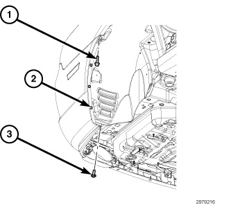 9. Install the fastener (3) that secures the rear fascia assembly to the rear fascia support bracket. Tighten the fastener securely. Repeat for opposite side.