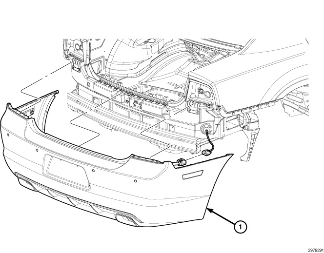 8. Install the fastener (1) that secures the rear fascia assembly to the rear quarter. Tighten the fastener securely. Repeat for opposite side.