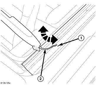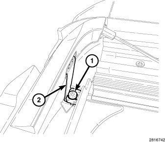 2. Rotate the deflector down, attach the straps (2) and install the strap screws (1) into the front beam until tight.