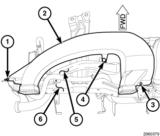 1. Position the left side instrument panel duct (2) to the instrument panel support (6).