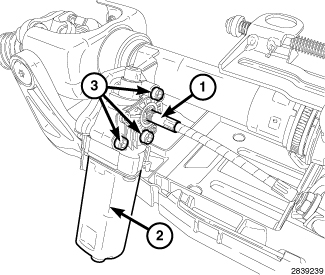 3. Install the three bolts (3) to attach the tilt motor (2) to the steering column assembly and tighten to 4 Nm (35 in. lbs.)