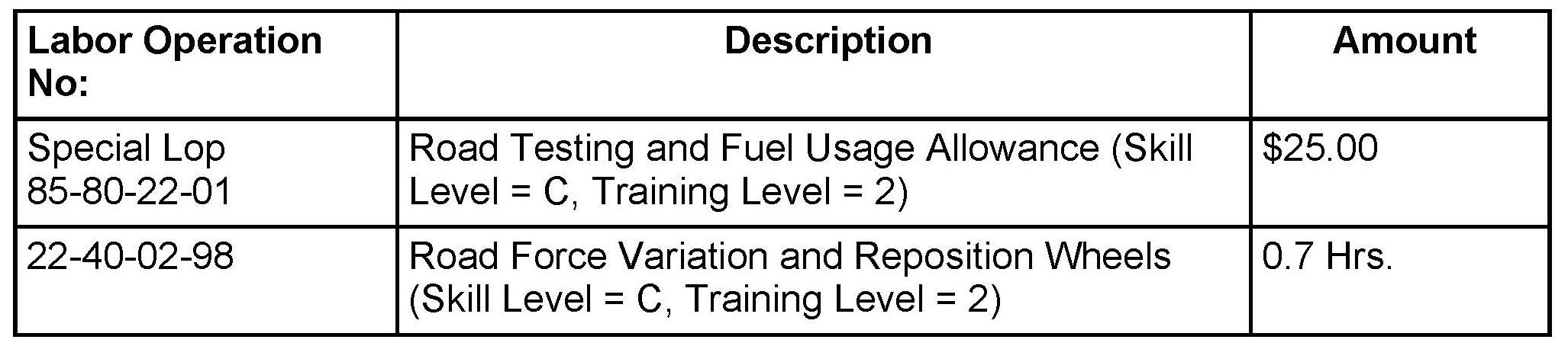 12. Perform and record road force variation to all wheel and tire assemblies (evaluated by special tools/equipment specified).