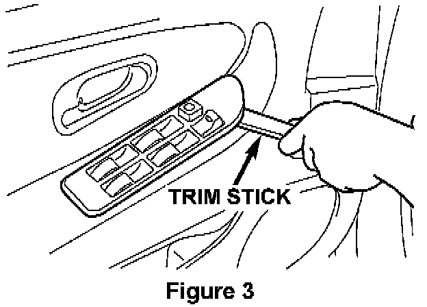 4. For vehicles with power windows: Remove the power window/lock switch assembly. Use a trim stick to release the clips at the front of the assembly (Figure 3).