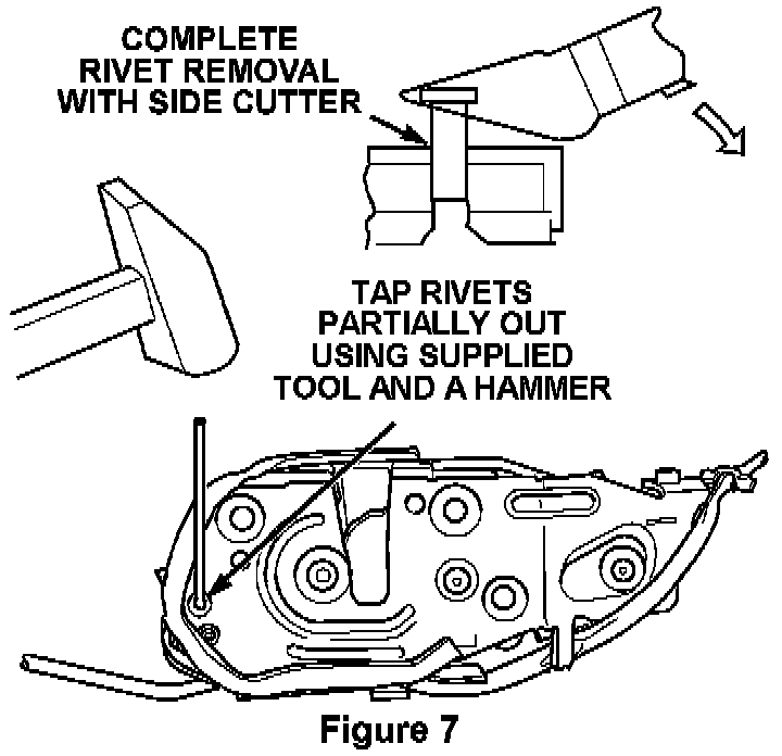 C. Remove the rivets from the plastic side of the latch using the side cutters (Figure 7).