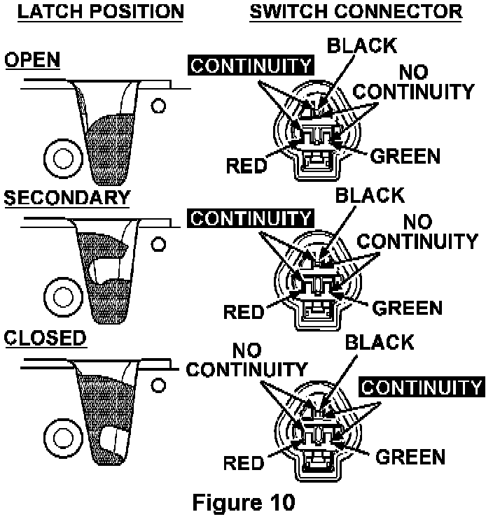24. Check the shoulder belt switch continuity at the switch electrical connector as follows (Figure 10):