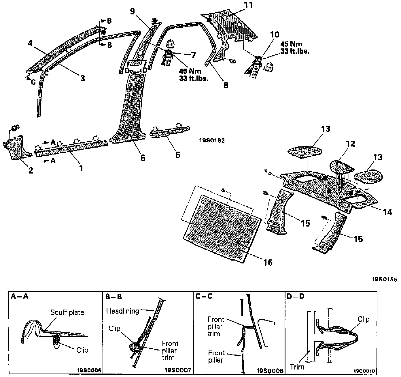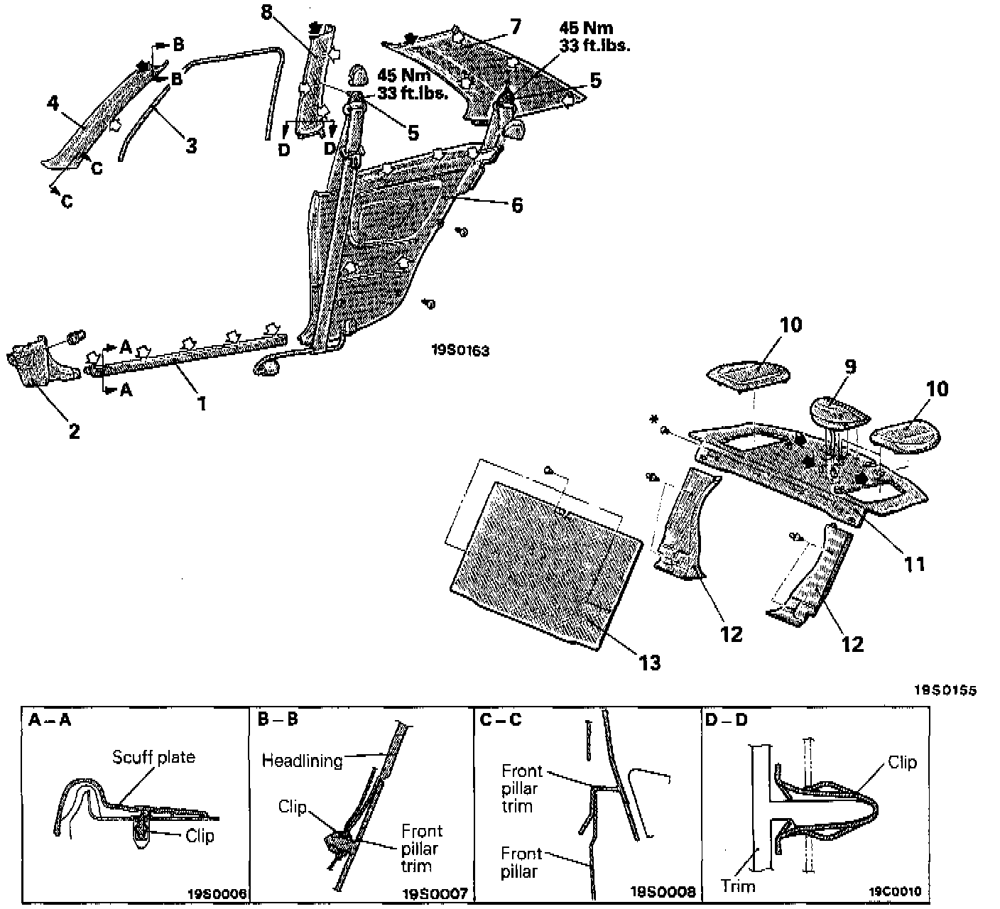 CENTER PILLAR TRIM, REAR PILLAR TRIM AND QUARTER TRIM REMOVAL STEPS