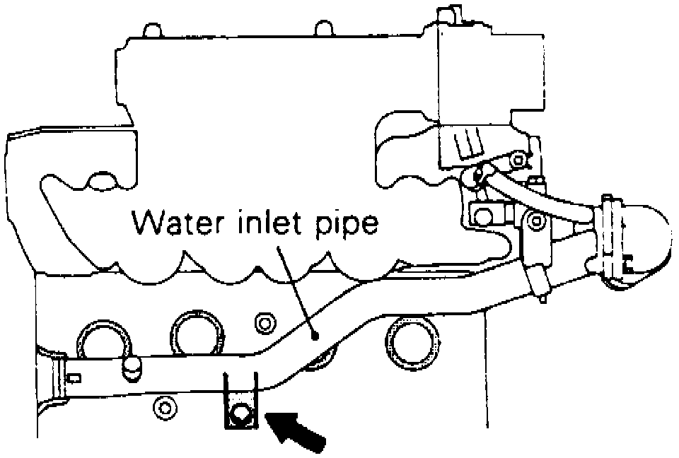e. Loosen water inlet pipe bolt and apply sealant to thermostat case assembly as shown, Fig. 20.