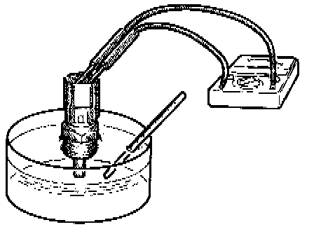 2. With temperature sensing portion of engine coolant temperature sensor immersed in hot water, check resistance.