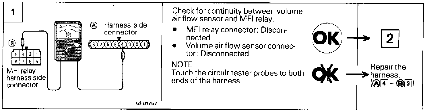Hint 1: If the engine stalls occasionally, crank the engine and shake the volume air flow sensor harness. If the engine stalls, poor contact of the volume air flow sensor connector is suspected.