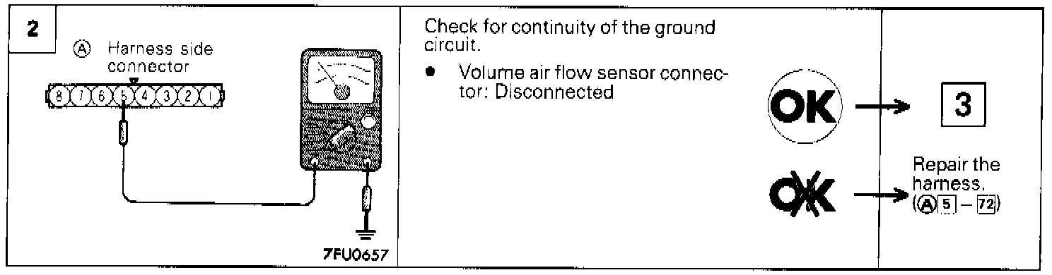 Hint 3: If the engine can be run at idle even though the volume air flow sensor output frequency is out of specification, troubles are often found in other than the volume air flow sensor itself.