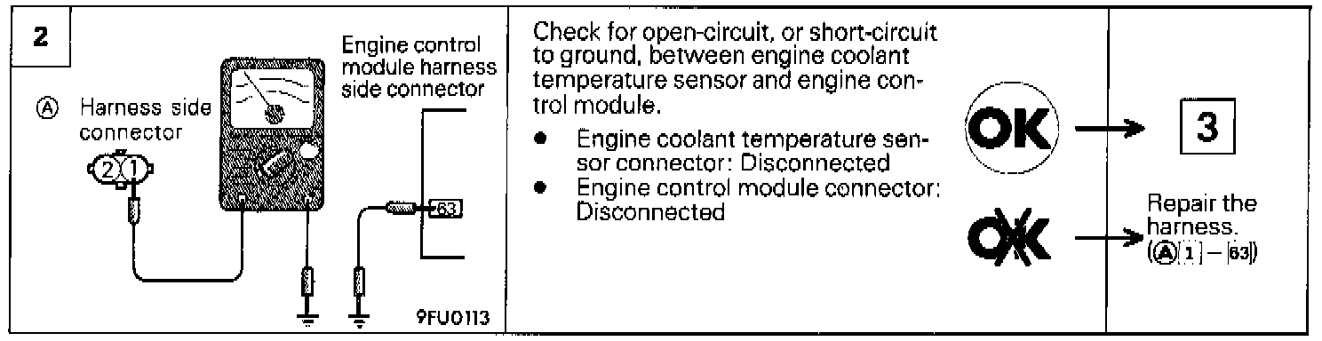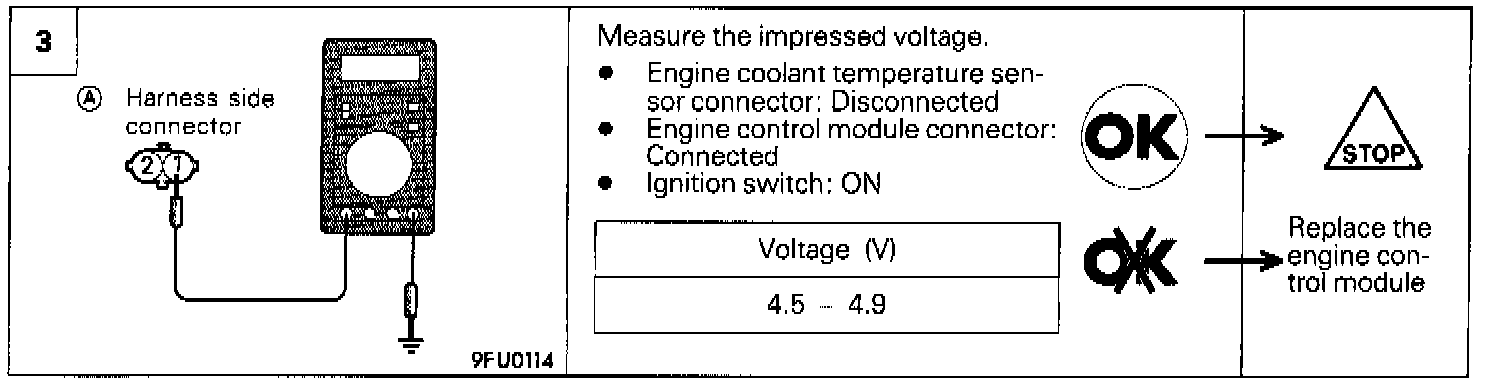 If the fast idle speed is inadequate or the engine emits dark smoke during engine warm up operation, the engine coolant temperature sensor may be faulty.
