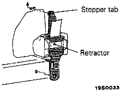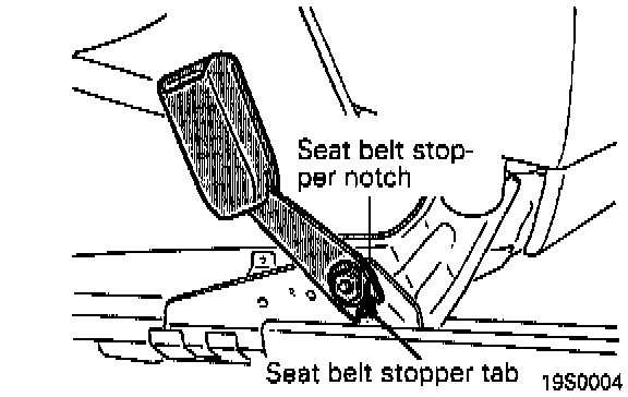 Securely insert the front seat belt stopper tab into the seal belt stopper notch.