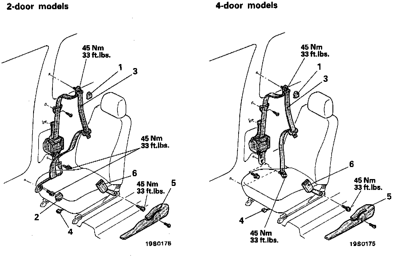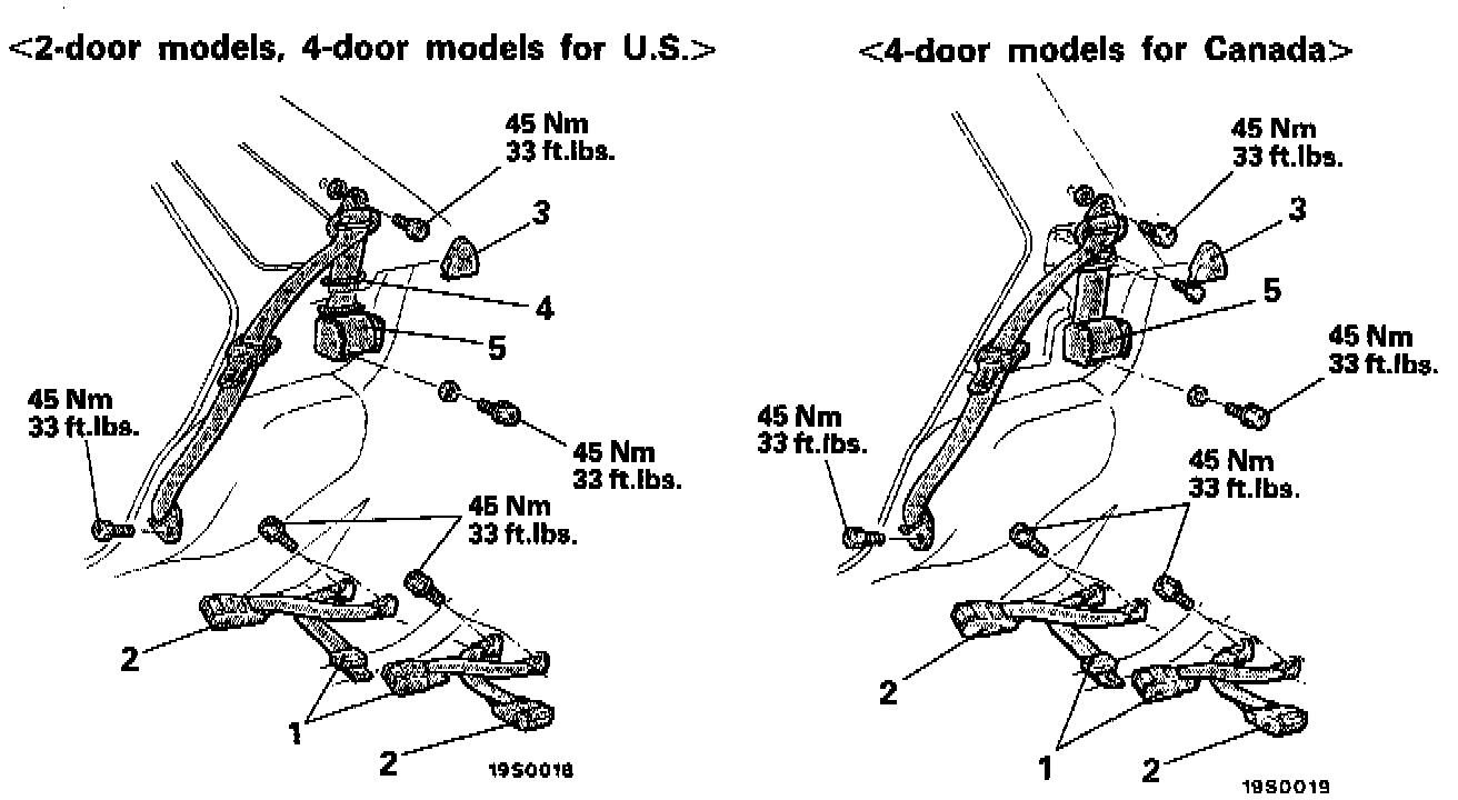4. Seat belt garnish <4-door models for U.S.> I 5. Outer seat belt
