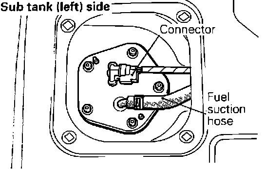1. Remove rear seat. Remove access covers and disconnect the fuel pump and fuel gauge connectors.