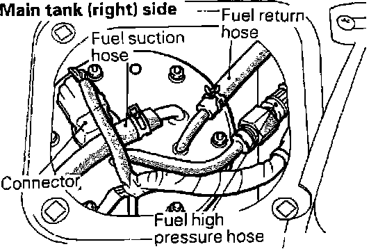 7. Disconnect the return line and vapor hose.