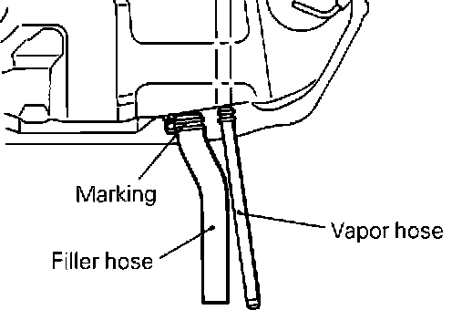 8. Detach the fuel filler hose and vapor hose.