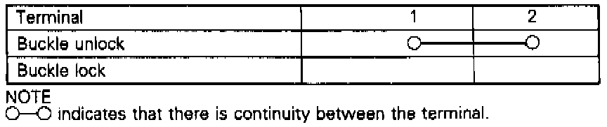 4. If the buzzer does not sound when terminal 3 and terminal 4 are connected with a jumper wire, check continuity of the seat belt switch. If there is continuity in the seat belt switch, replace the buzzer.