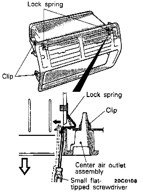 1. First remove the clip on the lower section of the center air outlet assembly.