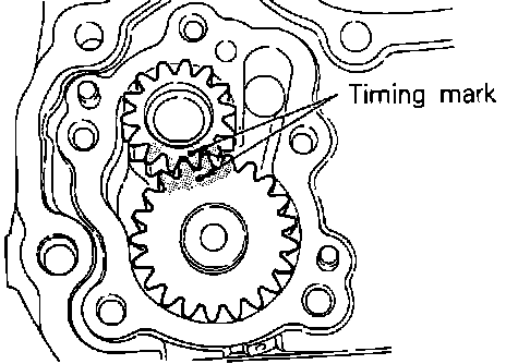 b. Coat oil pump drive and driven gears with oil then install, aligning timing marks.