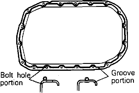 Fig. 62 Oil pan sealant locations. 2.4L/4-143.5 engine: