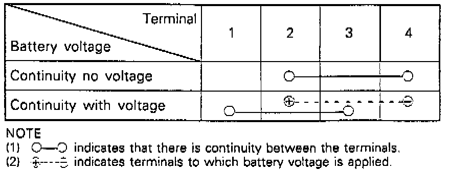 Check for continuity with voltage applied as indicated in the chart.