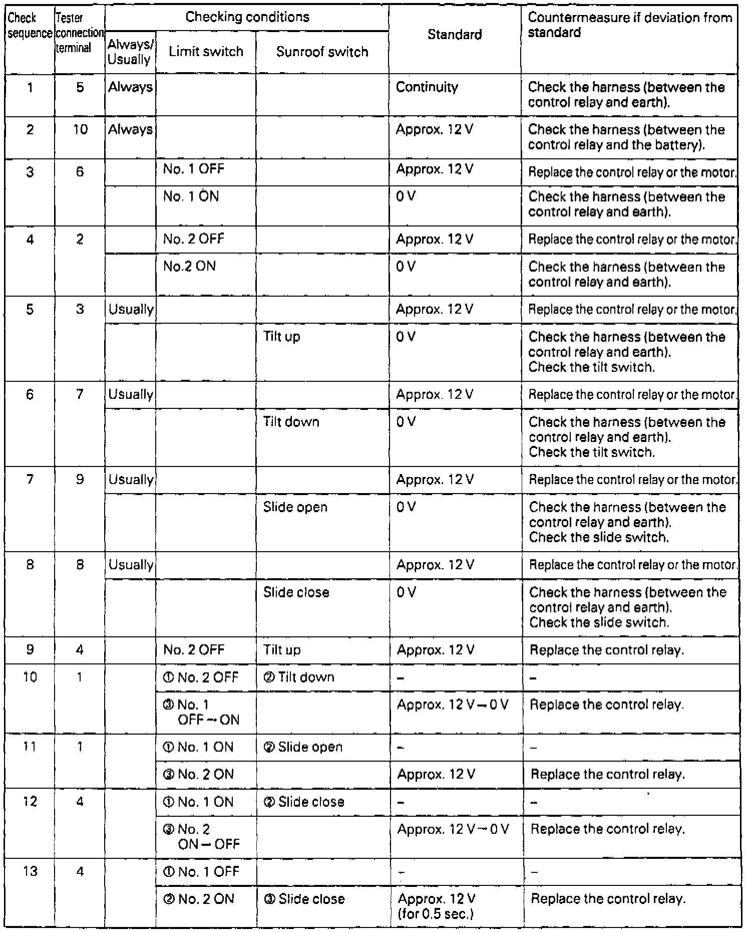 Sunroof / Moonroof Relay: Testing and Inspection