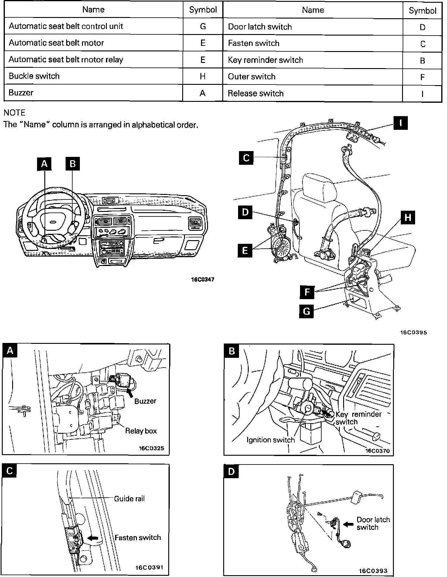 Component/Relay/Switch Locations (Automatic Seat Belt):
