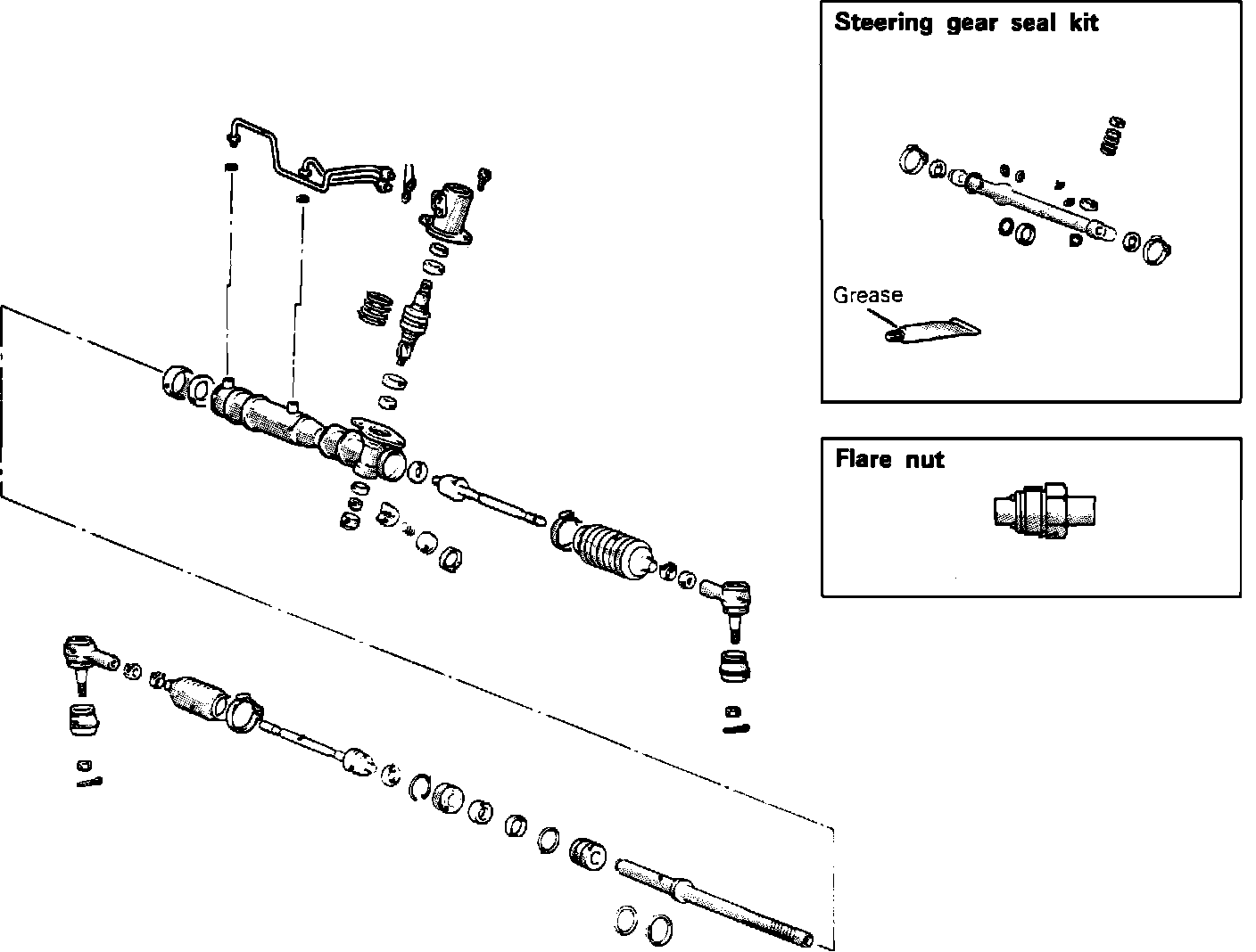 1. Apply Dextron or Dextron II automatic transmission fluid to O-rings, seal rings, entire surface of oil seals and rack.