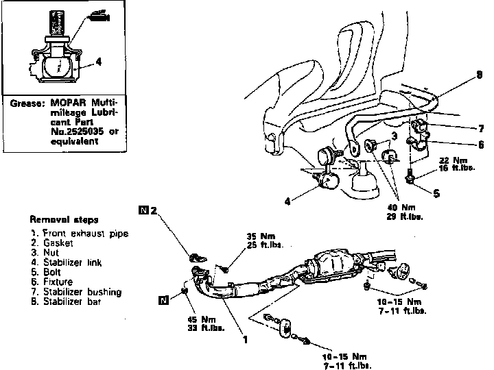 Fig. 12 Removing stabilizer bar. Colt Vista & Summit Wagon w/1.8L/4-98.6 & 2.4L/4-143.5 engines w/AWD: